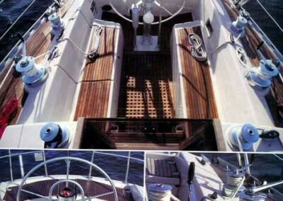 A près de 15 noeuds sous génois lourd tangonné, il faut voir un First 42 négocier puissamment une grosse mer de travers pour comprendre le véritable sens du mot stabilité.