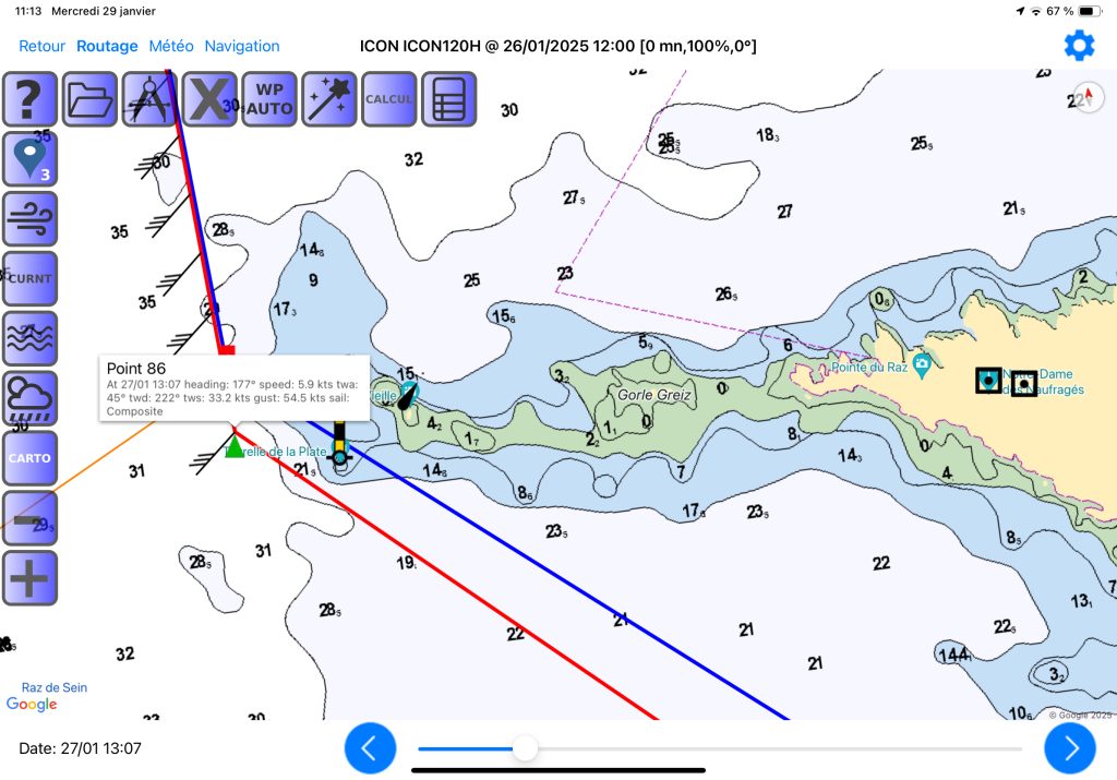 Pour ceux qui le souhaite, vous pouvez paramétrer les routages afin d’indiquer qu’avec un vent inférieur à un seuil, vous mettez le moteur…
