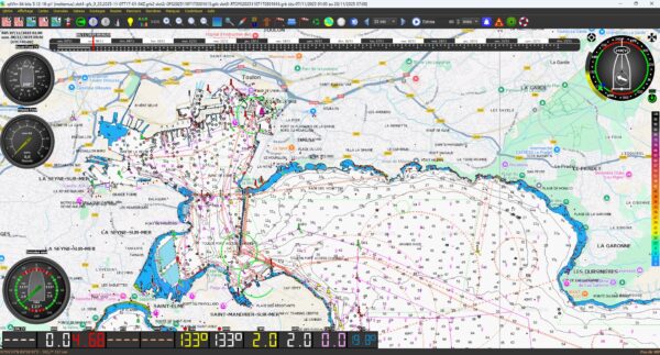 qtVlm est un logiciel de navigation pour bateaux à voile. C’est également un lecteur de grib gratuit qui accepte la plupart des formats et sources. Il permet l’affichage de cartes d’un grand nombre de formats : vectorielles (S57 et S63), raster (kaps, geotiff, …), cartes de Visit My Harbour et mbtiles.